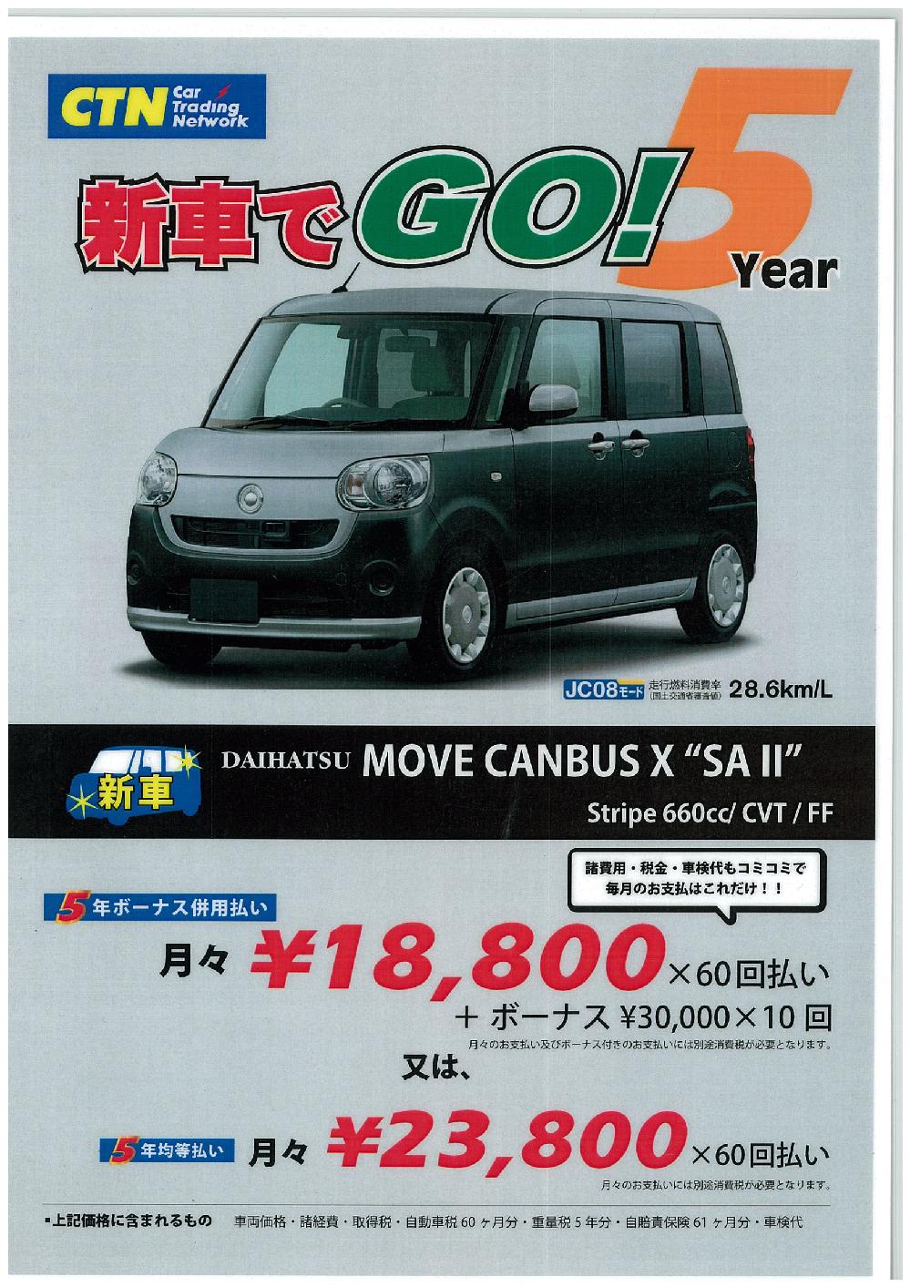 ムーヴキャンバスX”SAU” 新車でGO! 5Yearリース